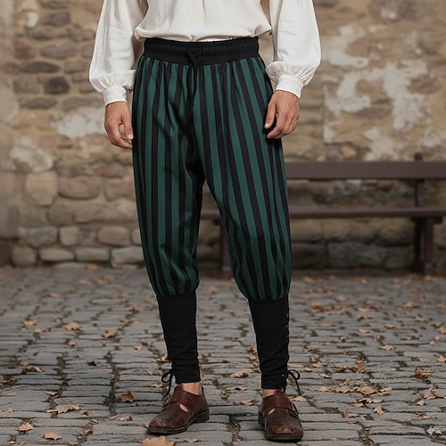 Retrò Vintage Medievale 17° secolo Pantaloni da pirata Pirata Cavaliere Vichingo Crociato Ranger Coulisse A righe Costume Per uomo Costumi da pirata Halloween Carnevale LARP Fiera Rinascimentale