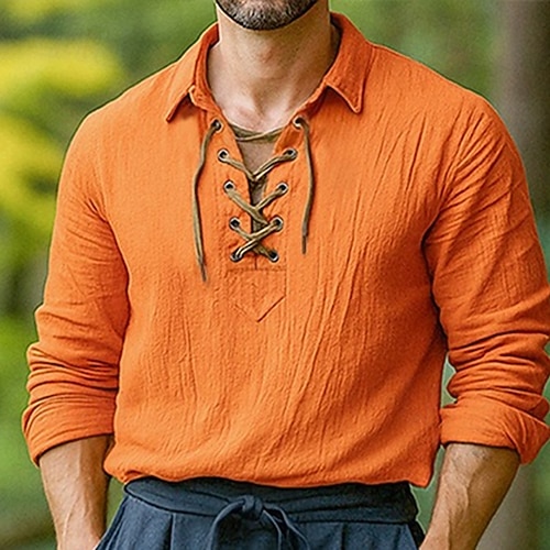 Per uomo Camicia Camicia di lino Stile vichingo Camicia Estiva Abbigliamento da spiaggia Tinta unica Vacanza Streetwear Bianco Arancione Verde Azzurro Manica Lunga Senza colletto Abbigliamento