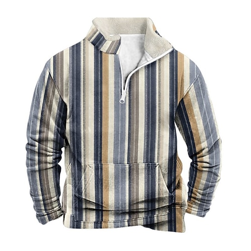 Per uomo Stampa Strisce verticali Felpa con cerniera a un quarto Felpe Manica Lunga Felpa Mezza zip Vintage Retrò Stampa Ferie Uscire Festival Stampato Autunno Inverno