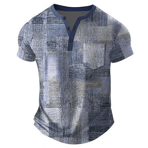 Per uomo Patchwork Maglietta Maglia Henley Manica Corta maglietta Stampa 3D Henley Camicia Designer Retrò Vintage Streetwear Casuale Quotidiano Blu Viola Verde Estate Primavera Tutte le stagioni