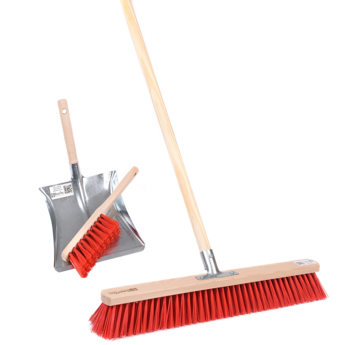 BawiTec Profi- Kehrbesen Set Kehrset Besen 50cm Kunststoff rot Stiel Handfeger Feger