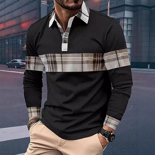 Per uomo Plaid Blocco di colori Polo Manica Lunga Magliette polo Bavero Casual All'aperto Streetwear Athleisure Abbigliamento quotidiano Stampa 3D Bottoni Primavera Autunno Inverno Blu Nero Bianco