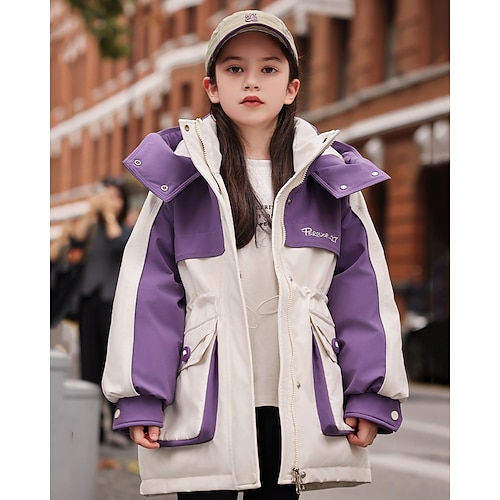 Bambini Ragazze Giacca in piuma Giacca Imbottita Blocco di colori Sport Tasca Tenere al caldo Antivento All'aperto Cappotto Capispalla 5 anni Inverno Rosa Viola Cachi