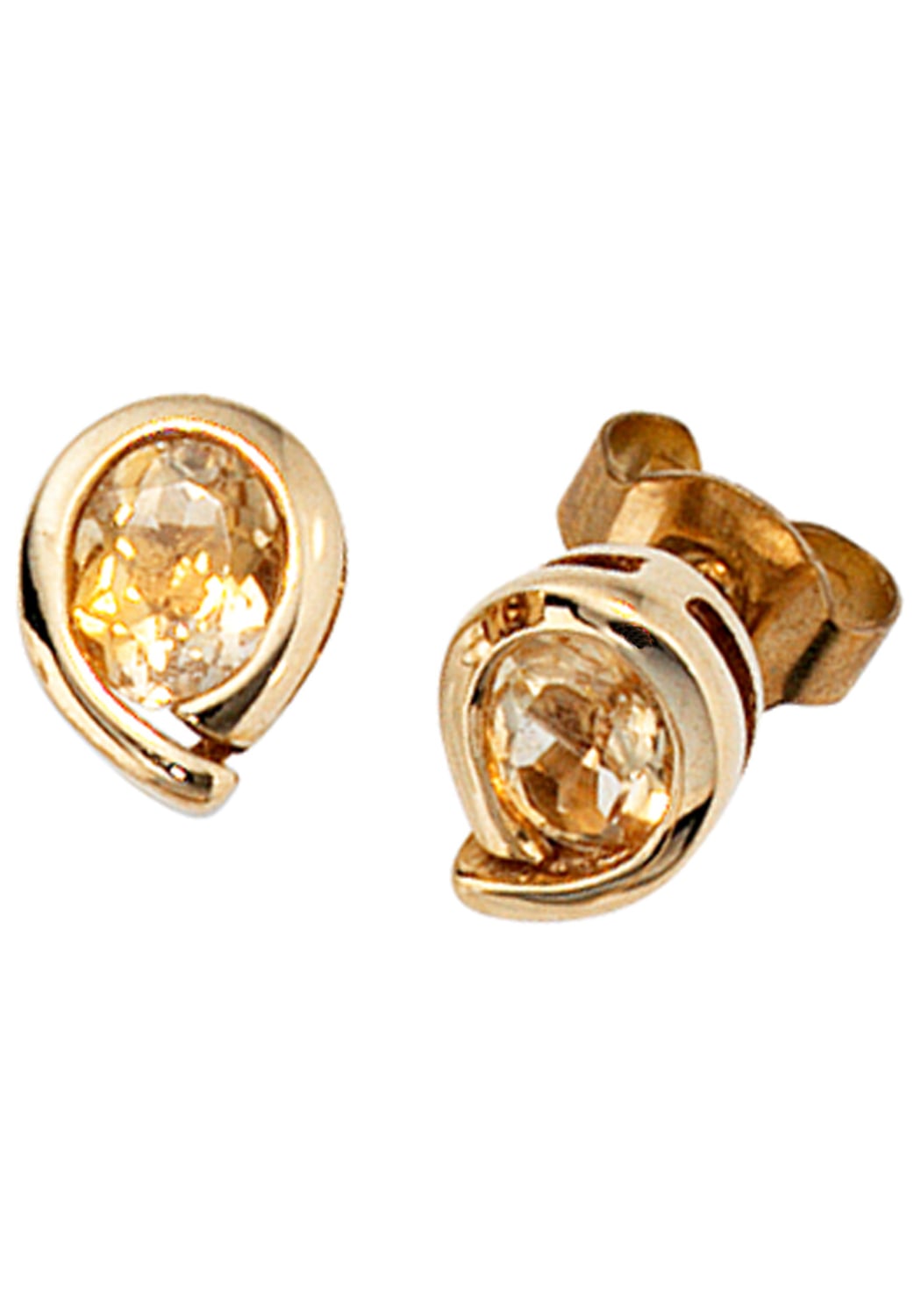 Paar Ohrstecker JOBO "Tropfen", gelb (gelbgold 375), Ohrringe, Damen, Gelbgold 375, 375 Gold mit Citrin 7,7 mm