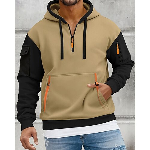 Per uomo Felpa con cappuccio Maglione Felpa con cappuccio e zip corta Rosso bordeaux Blu marino Cachi Grigio Con Cappuccio Blocco di colori Tasca Sport Outdoor Casuale Quotidiano Streetwear