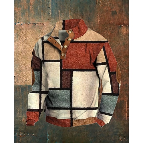 Per uomo Grafico Blocco di colori Felpa Moda Streetwear Casual Collo alla coreana Uscire Marrone chiaro Marrone Arcobaleno Bottoni Stampato Primavera Autunno progettista S M L XL 2XL 3XL