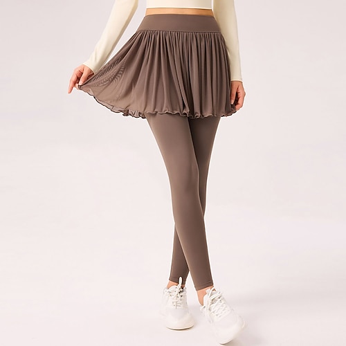 Per donna Tinta unita Gonna con leggings Patchwork Elegante Elastico Traspirante Tennis Pickleball Corsa Pantaloni Inverno Nero Bianco Caffè Abbigliamento da tennis