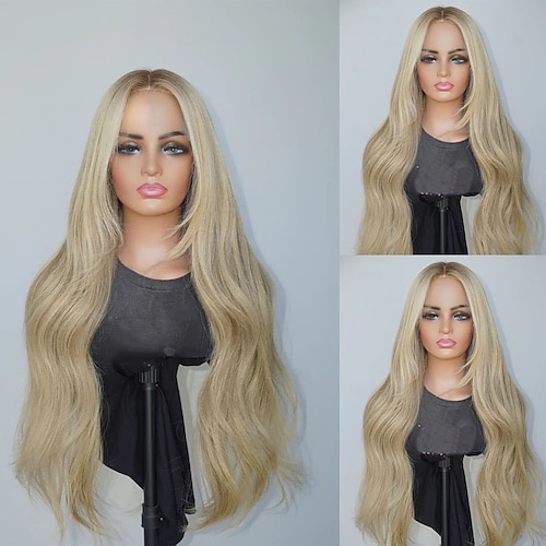 Capelli Vergini Non Trattati 5x5 Chiusura 13x4 Fronte in Pizzo Parrucca Riga centrale Capelli brasiliani Ondulato Biondo Parrucca 130% 150% Densità dei capelli Capelli schiariti 100% Vergine Senza