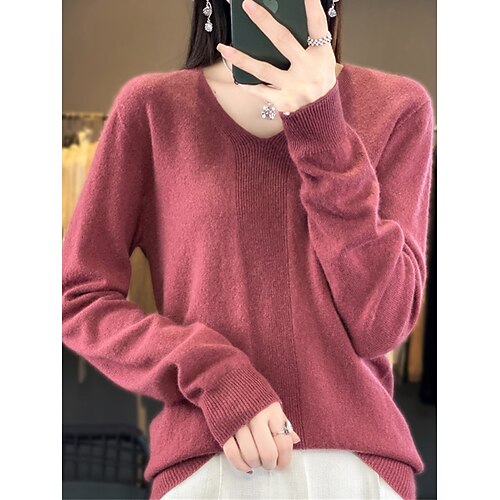 Per donna Pullover Maglione Di tendenza Informale Morbido Tinta unica A coste A V Lavorato a maglia Manica lunga Top regolari Maglia Esterno Giornaliero Per uscire Verde foresta Rosso ciliegia