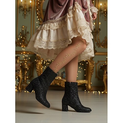 stivaletti da donna con glitter verdi e tacco a blocco: calzature scintillanti per feste di carnevale, festival e celebrazioni