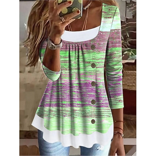 Per donna Maglietta Ombre Grafico Geometrico Vintage Elegante Classico Manica Lunga Collo quadrato Top lunghi Quotidiano Weekend Patchwork Bottoni Stampato Rosa Blu Viola Verde Estate Primavera