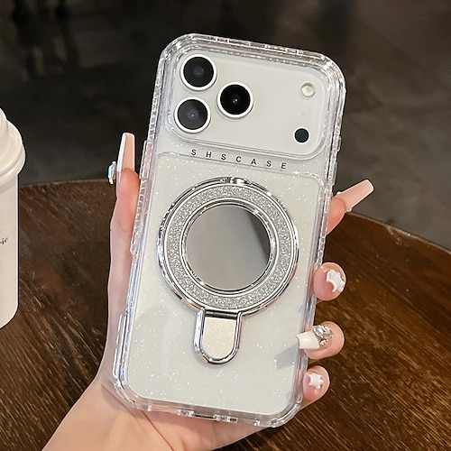 telefono Custodia Per iPhone 17 Pro Max 17 Air 16 15 14 Pro Max Plus 16e 13 12 Pro Max Copertura Posteriore con Supporto A specchio Magnetico Retrò TPU PC