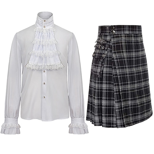 Punk Gotico Medievale Steampunk Blusa / Camicia Kilt scozzesi utilitari Vampiro Vichinghi Costume Per uomo Celtico Halloween Carnevale Casual Quotidiano LARP Adulti Camicia Pantaloni