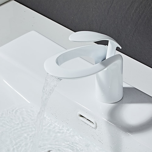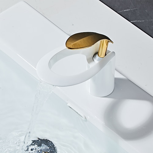 Rubinetto Miscelatore Lavabo Bagno, Ottone Nero Opaco Cascata Diffusa Monocomando Monoforo Vaso Rubinetto Con Interruttore Caldo Freddo Bianco Cromato