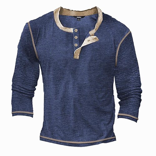 Per uomo Maglietta Maglia Henley Maglietta a Maglia Waffle Camicia a Maniche Lunghe Manica Lunga Blocco di colori Moda Designer Essenziale Patchwork Henley Vacanza Streetwear Uscire Primavera