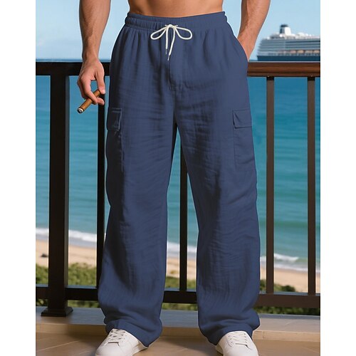 Per uomo Pantaloni di Lino Pantaloni Pantaloni Estivi Pantaloni Larghi Pantaloni da Spiaggia Coulisse Elastico in vita Gamba Dritta Semplice Comodità Traspirante Lunghezza intera All'aperto Casuale