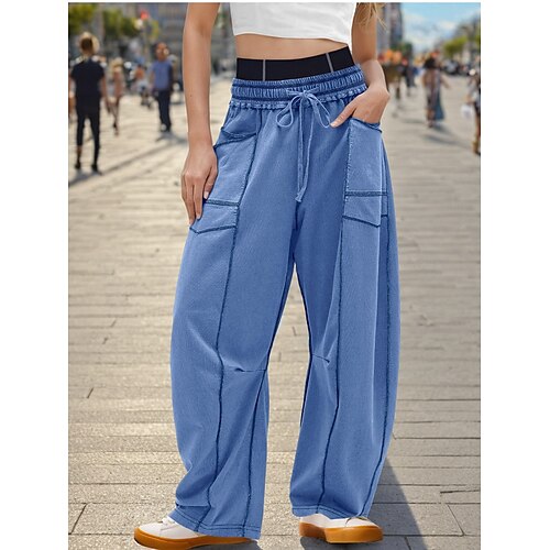 Per donna Pantaloni da tuta Gamba larga Chinos Vacanza Moda Streetwear Lunghezza intera Vita Alta Semplice Tasca Fascia Elastica Comodo Comodità Morbido Alta elasticità All'aperto Streetwear Blu Nero
