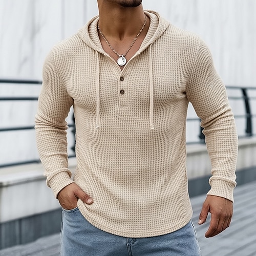 Per uomo Maglietta Waffle Maglietta Maglia Henley a nido d'ape Manica Lunga Scollo a V Con Cappuccio Primavera Autunno Inverno Tinta unica Tradizionale / Vintage Casual Puro All'aperto Casa Sport