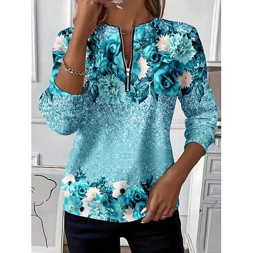 Per donna Felpa Pullover Felpe con cerniera Grafico Astratto Moda Casual Manica Lunga Girocollo Top Regolari Streetwear Abbigliamento Quotidiano Cerniera Stampato Verde primavera Blu Verde Autunno
