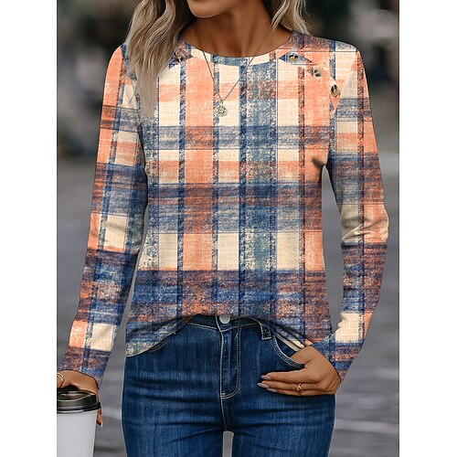 Per donna Maglietta Grafico Geometrico Vintage Moda Elegante Manica Lunga Girocollo Top Regolari Quotidiano Weekend Stampato Blu Arancione Marrone Estate Primavera Autunno