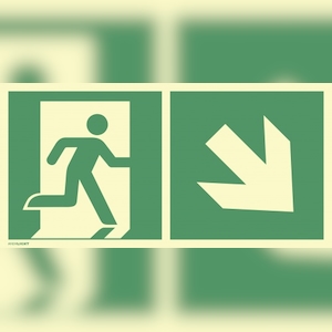 Notausgang rechts abwärts, Kombi, ISO 7010, PVC-U selbstkl., 160-mcd, 297x148 mm