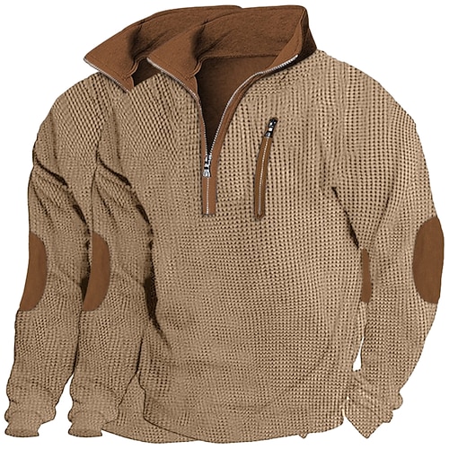 Per uomo Maglietta Maglietta a Maglia Waffle Camicia a Maniche Lunghe Manica Lunga Zip a un quarto Inverno Primavera Autunno Blocco di colori Testurizzato Moda Designer Essenziale Patchwork