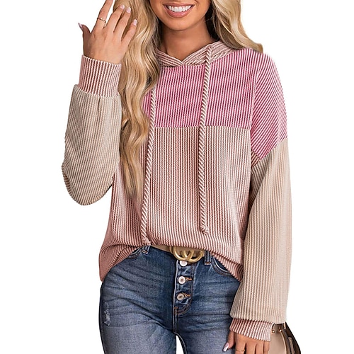 Per donna Felpa pullover Felpe con cappuccio casual Coulisse Manica Lunga Top Athleisure Blocco di colori All'aperto Vacanze abbigliamento sportivo Abbigliamento sportivo Rosa Blu Verde