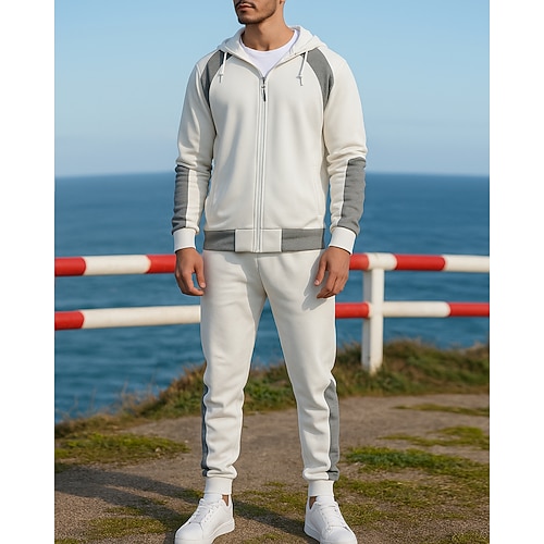 Per uomo Felpa con cappuccio Tuta da Ginnastica Tuta da 2 pezzi Coulisse Con zip Blocco di colori Completo Abbigliamento Autunno Nero Lavoro All'aperto Viaggio Leggero Di tendenza Manica Lunga Sport