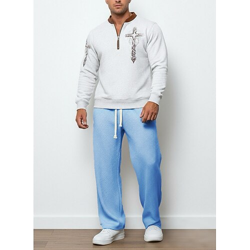 Per uomo Maglia Tuta da Ginnastica Pantaloni da Tuta Set di abiti Collo alla coreana All'aperto Quotidiano Sportivo Coulisse Tasca Mezza cerniera Blocco di colori Croce Bianco Azzurro cielo Grigio