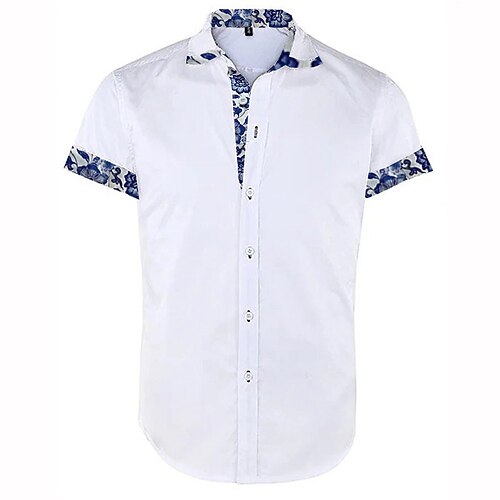 Per uomo Camicia Camicia Estiva Camicia con Bottoni Nero Bianco Blu marino Azzurro Manica Corta Floreale Blocco di colori Collo ripiegato Streetwear Casuale Bottonato Abbigliamento Poliestere Sport