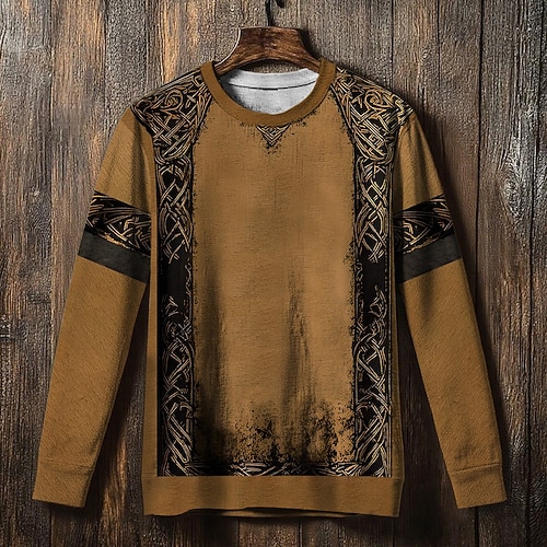 Per uomo Maglia Nero Blu marino Marrone Girocollo Nodo celtico Stampato Casuale Quotidiano Abbigliamento casual alla moda Vintage Vichingo Autunno Inverno Abbigliamento Felpe con cappuccio Felpe