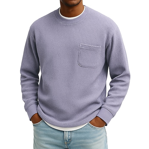 Per uomo Maglietta Waffle Maglietta Maglia Henley a nido d'ape Manica Lunga Girocollo Autunno Inverno Tutte le stagioni Tinta unica Testurizzato Tradizionale / Vintage Casual Tasca Casuale Casa