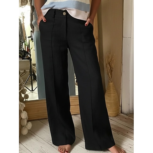 Per donna Gamba larga Chinos Moda Streetwear Casual Lunghezza intera Vita Alta Semplice Tasca Comodo Morbido Confortevole Micro-elastico All'aperto Streetwear Nero Marrone Albicocca Grigio Primavera