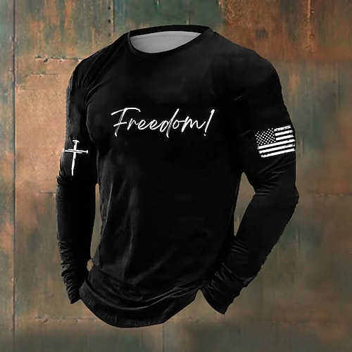 US America 250 Anniversario Maglietta Uomo Bandiera Americana Libertà Manica Lunga Stampa 3D Collo a Giro Daily Casual Divertente Politica Festa Compleanno Street Blu Nero Rosso