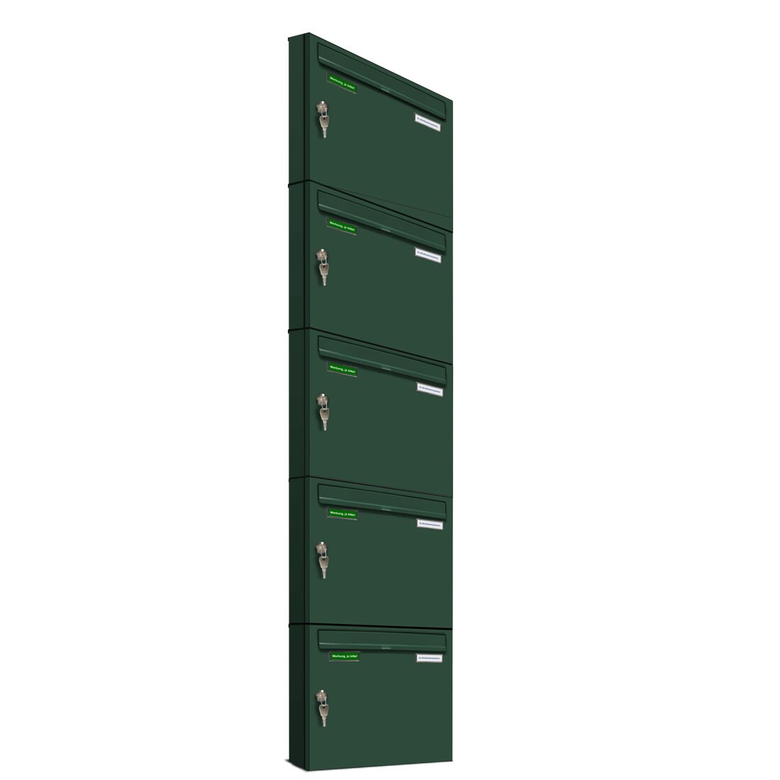 AL Briefkastensysteme 5 x Basic Wand Briefkasten in RAL Farbe 6005 Moos Grün für Post A4, wetterfest, Artikelnummer: 431P5EA1P6005