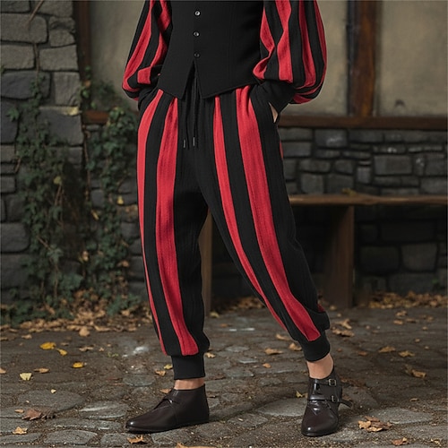 Retrò Vintage Medievale Rinascimento Pantaloni da pirata Pirata Cavaliere Vichingo Crociato Cavaliere Celtico Costume Per uomo Costumi da pirata Halloween Carnevale Mascherata Carnevale Performance