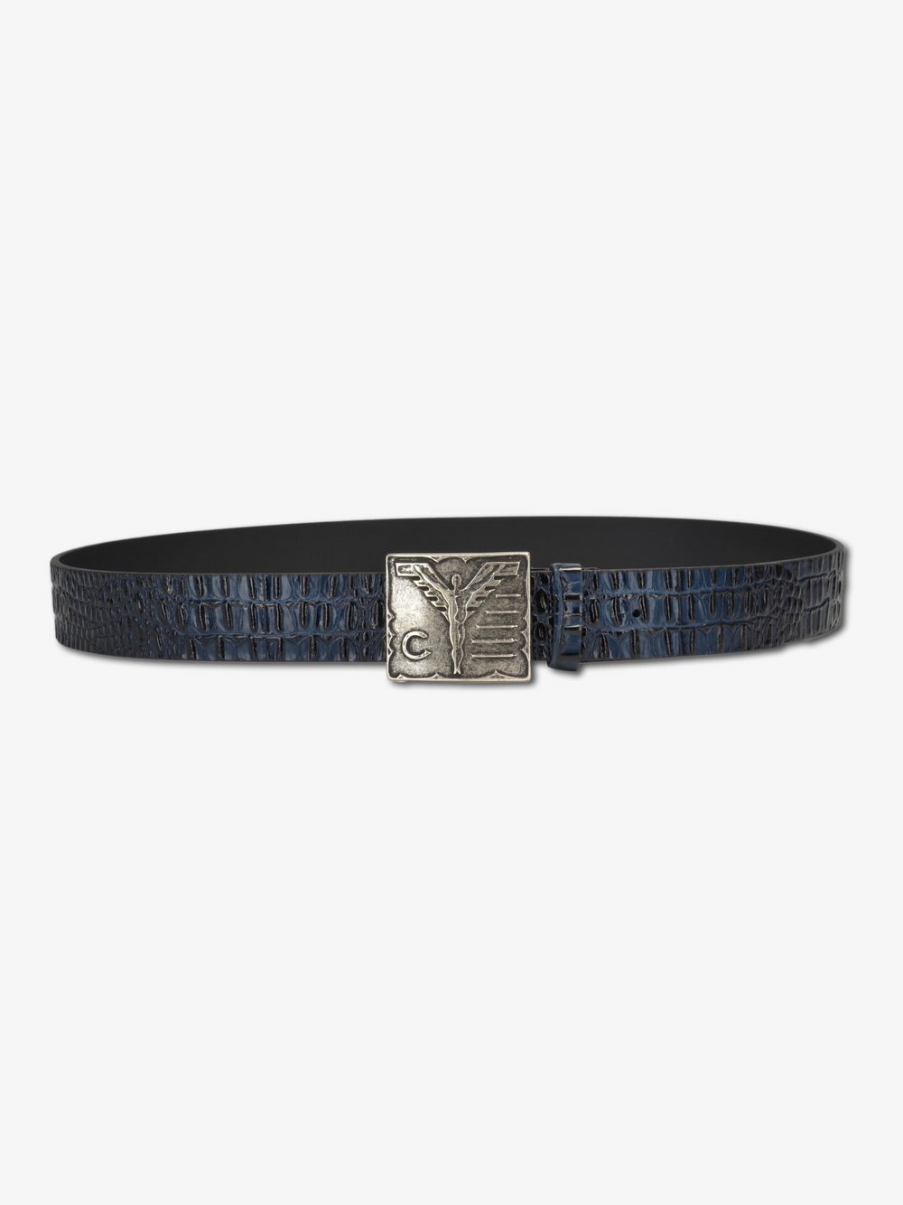 Anthoni Crown Ledergürtel mit Lilien Schliesse, helle Rückseite blau 110