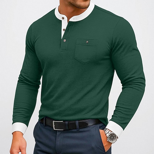 Per uomo Maglia Henley Maglietta Maglietta in misto cotone Manica Lunga Blocco di colori Tinta unita Moda Designer Essenziale Patchwork Collo alla coreana Henley Vacanza Streetwear Casuale Primavera