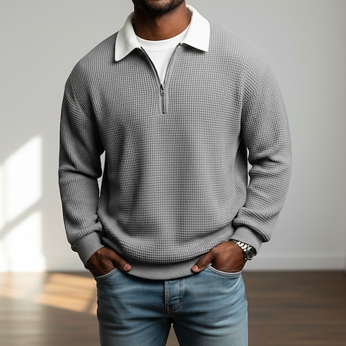 Per uomo Magliette Polo a Nido d'Ape Testurizzato Casuale Streetwear Manica Lunga Moda Tempo libero Blocco di colori Testurizzato Con zip Autunno Primavera Autunno Autunno Inverno Vestibilit