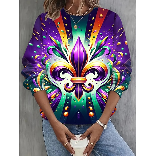 Per donna Felpa Pullover Felpe con cappuccio Grafico Blocco di colori Tinta a nodi Moda Casual Manica Lunga Girocollo Top Regolari Streetwear Abbigliamento Quotidiano Stampato Giallo Viola Verde