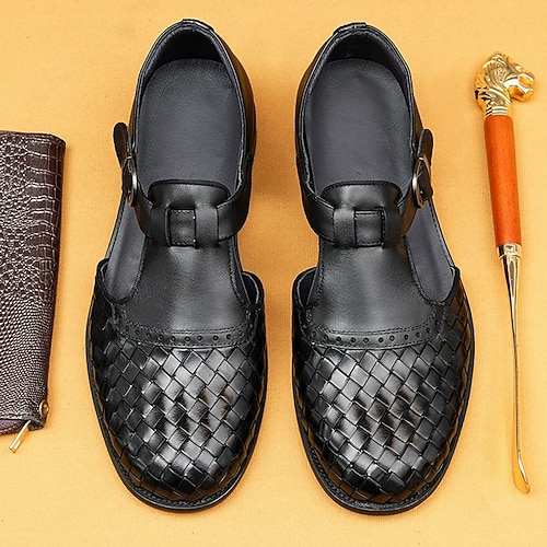 mocassini tradizionali da uomo in pelle intrecciata marrone con fibbia - perfetti per l'abbigliamento casual da lavoro e per tutti i giorni