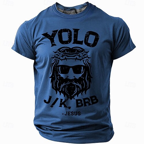 Per uomo Divertente Gesù Cristiano Maglietta Manica Corta maglietta Stampa 3D Girocollo Camicia Retrò Vintage Casual Stile da Strada Sport all'Aperto Ferie Uscire Blu lago Nero Bianco Primavera