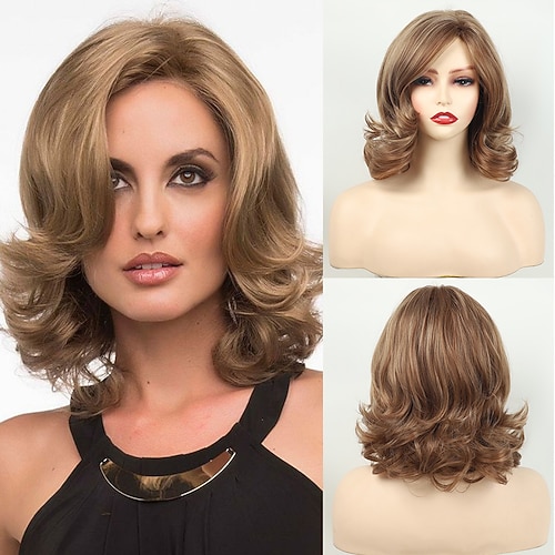 parrucca castana riccia parrucca ondulata parrucca riccia a strati per donne bianche parrucca sintetica naturale ondulata per donne parrucca di media lunghezza ombré