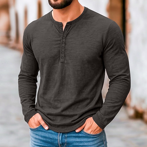 Per uomo Maglia Henley Camicie retrò Camicia vintage Manica Lunga Casual Tasca Henley Casuale Tutte le stagioni Blu Viola Marrone Maglietta Henley