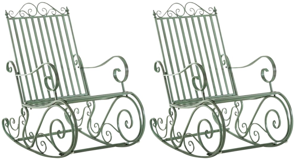 Set di 2 sedie a dondolo da esterno in Metallo verde antico