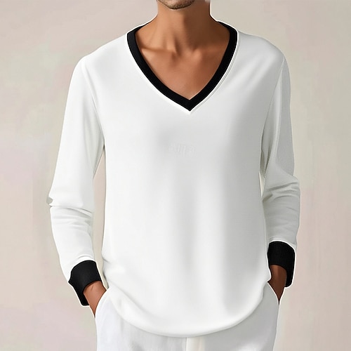 Per uomo Maglietta Camicia a Maniche Lunghe Manica Lunga Scollo a V Primavera Autunno Blocco di colori Moda Designer Essenziale Patchwork Vacanza Streetwear Uscire Bianco Maglietta Top per Uomo