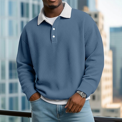 Per uomo Blocco di colori Magliette Polo a Nido d'Ape Testurizzato Manica Lunga Magliette polo Bavero Casual Scuola Athleisure Abbigliamento quotidiano Stampa 3D Autunno Inverno Blu Arancione Verde