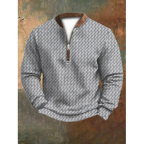 Per uomo Maglia Felpa con zip corta Nero Marrone Grigio Mezza zip Blocco di colori A coste Testurizzato Trama a maglia Quotidiano Sport Outdoor Ferie Poliestere Streetwear Casual Primavera Autunno