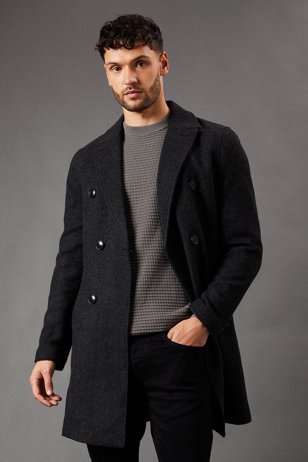 Burton Mens Charcoal Double Breasted Wool Blend Coat Material_polyester - Size X-large | Burton Sale | Discount Designer Brands