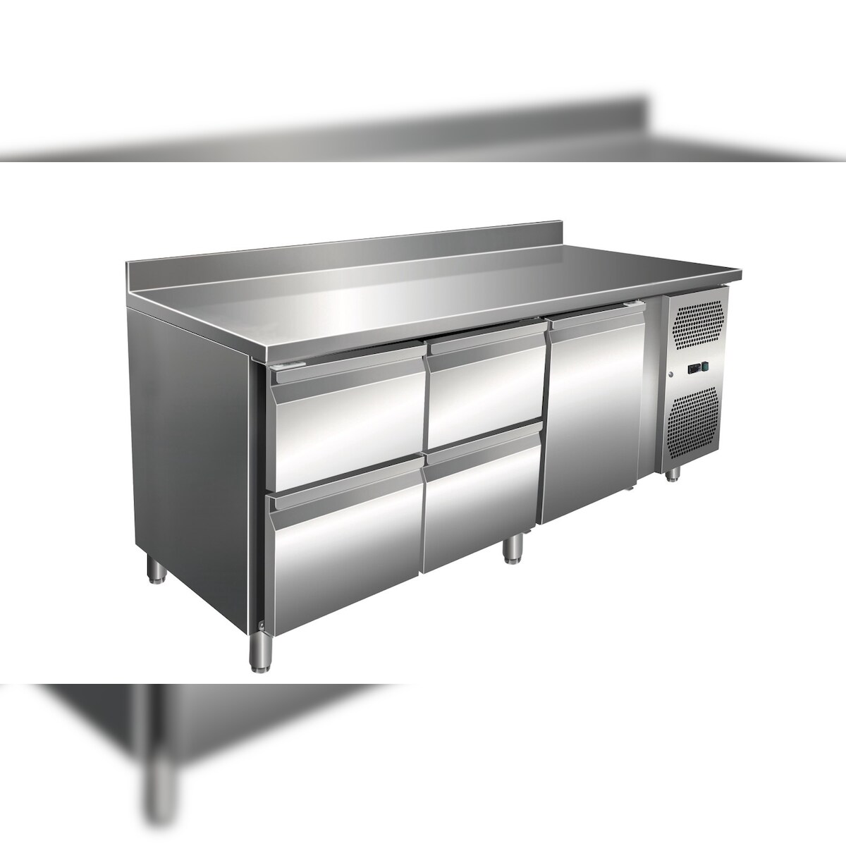 A&S polarny Edelstahl Kühltisch Kühltheke 4 Schubladen/ 1 Tür 158 L -2/+8°C Aufkantung